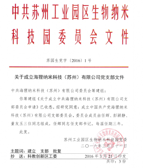 中國共產(chǎn)黨從誕生到今天,已經(jīng)走過了95年波瀾壯闊的奮斗歷程,蘇州作為一片有著光榮革命傳統(tǒng)的熱土,在黨的領(lǐng)導(dǎo)下也發(fā)生了翻天覆地的變化。今年是“十三五”開局之年,也是推進(jìn)供給側(cè)結(jié)構(gòu)性改革的攻堅(jiān)之年,創(chuàng)新實(shí)干將是蘇州發(fā)展的新基調(diào)。海貍納米科技正是海歸黨員任輝響應(yīng)國家創(chuàng)新實(shí)干的號(hào)召回國創(chuàng)辦的高科技創(chuàng)新企業(yè)。公司創(chuàng)建之初不到10個(gè)人創(chuàng)業(yè)團(tuán)隊(duì)中,有6人是共產(chǎn)黨員,經(jīng)過5年的發(fā)展,海貍在今年初獲得了建立黨支部的批復(fù),目前公司黨員人員數(shù)已占到總?cè)藬?shù)的30%。