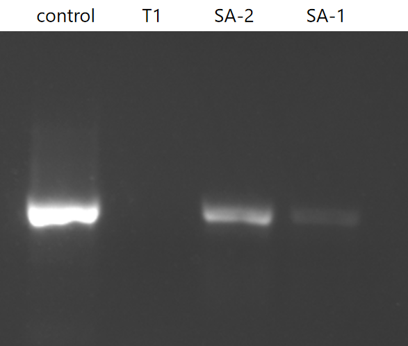 我們選用了進(jìn)口磁珠以及兩種品牌的國(guó)產(chǎn)鏈霉親和素磁珠(SA磁珠)驗(yàn)證其對(duì)PCR的影響。結(jié)果出乎意料,進(jìn)口T1磁珠對(duì)PCR的抑制效果最為明顯。SA-1磁珠對(duì)PCR的影響強(qiáng)于SA-2磁珠。