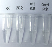 本次實(shí)驗(yàn)我們選用2種不同表面的磁珠,其中一款為二氧化硅羥基表面。另外一款為聚合物羧基表面。兩種磁珠在PCR體系中均無(wú)Fe離子泄露,但都對(duì)PCR產(chǎn)生抑制,其中二氧化硅羥基磁珠更為明顯。